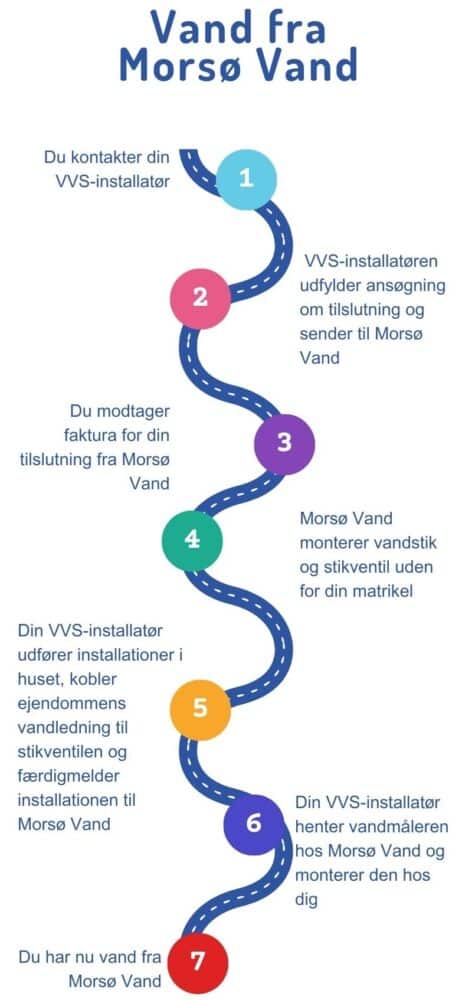 Processen for at få vandforsyning fra Morsø Vand på din adresse kan du se på modsatte side.